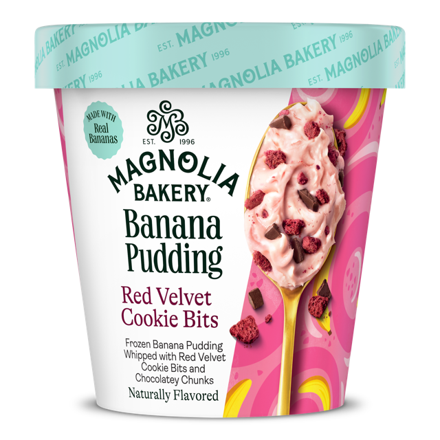Red Velvety Bliss. This frozen-to-thaw dessert combines real bananas, red velvet cookie bits, and rich chocolatey chunks. It's naturally flavored and whipped together into light, airy perfection.