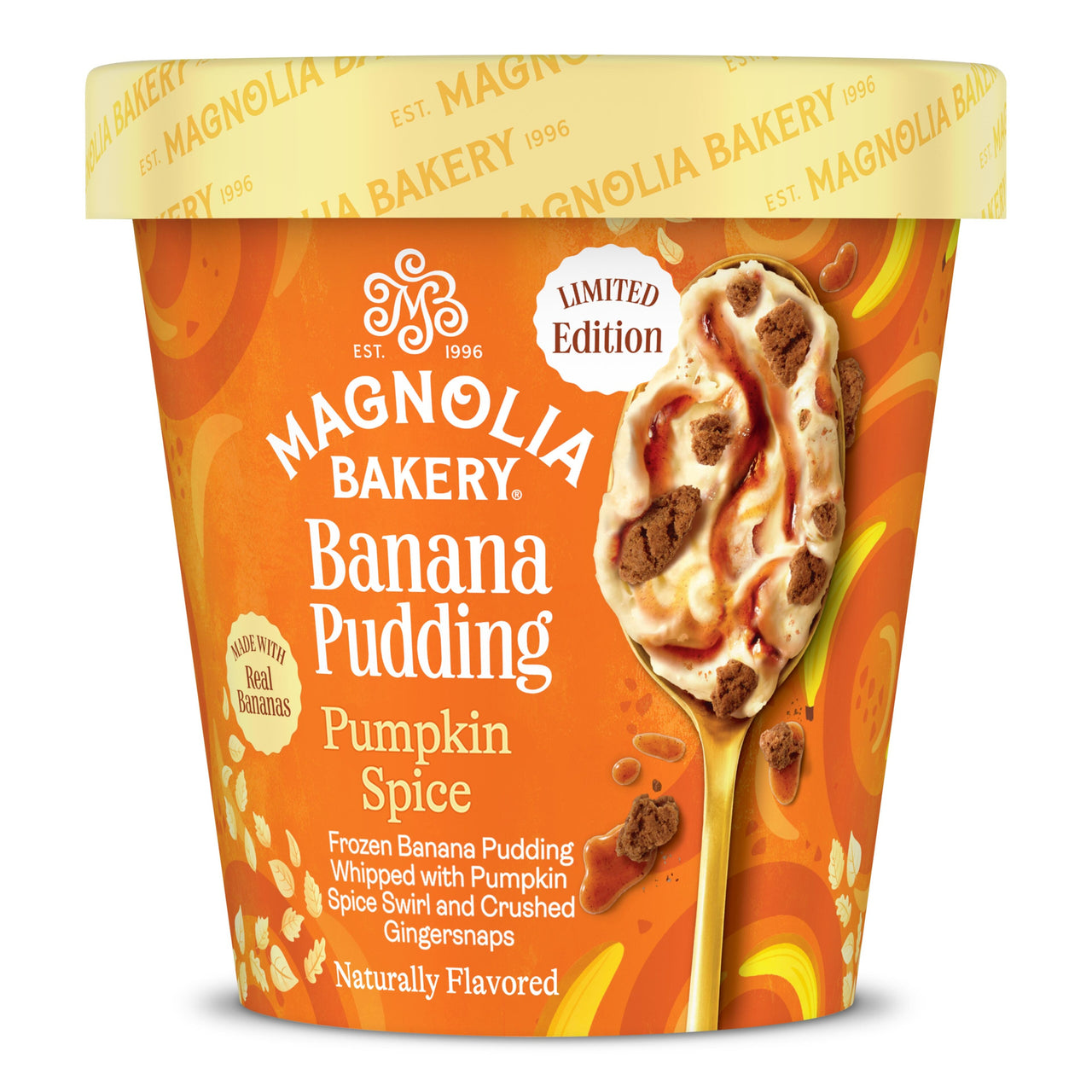 Savor the season with Magnolia Bakery’s frozen-to-thaw Pumpkin Spice Banana Pudding. Aromatic pumpkin spice, crunchy gingersnap cookies, and creamy banana pudding create the perfect fall treat.